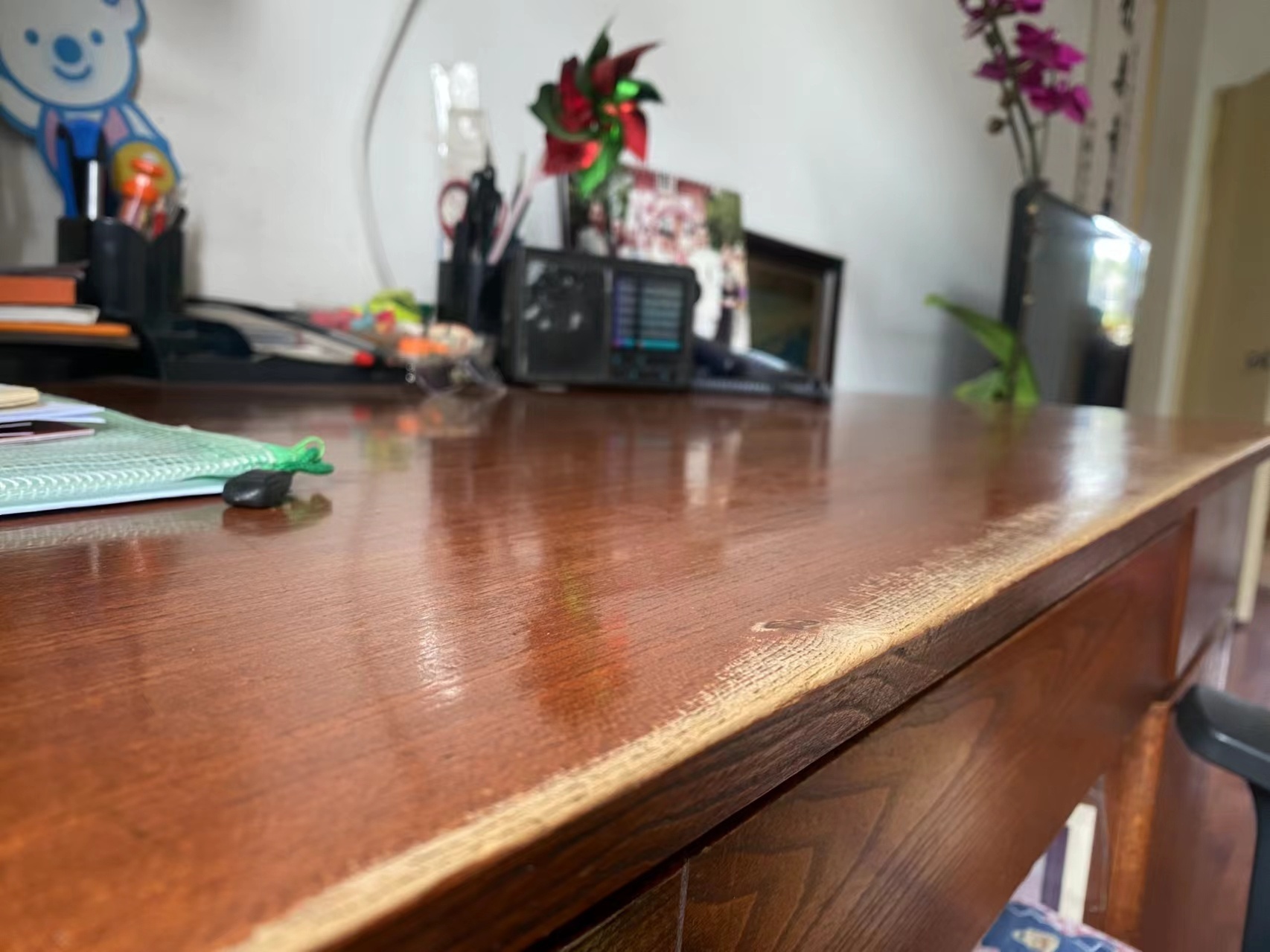 家里地方不大,但一张用了40年的书桌,着实不小。深黄色的桌面,被读书的人覆上一本又一本书,边沿处,磨掉了漆,露出一条长长的浅黄的边。