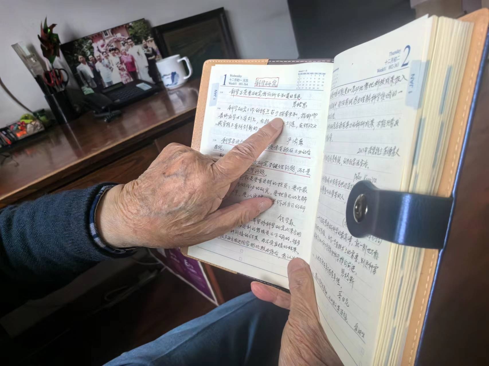 我是记者刘悦。俞先生书桌的抽屉里,最上层放着一个笔记本,扉页写着摘录,下面分成“知识”“诗歌知识”和“养花”三个部分。怎么松土、施肥,和怎么读诗、做实验写在一起。笔迹干净、段落工整,圈圈点点,可见做笔记的人经常翻看。其中摘抄了这么一句——“科学正是要研究我们所不知道的东西。”