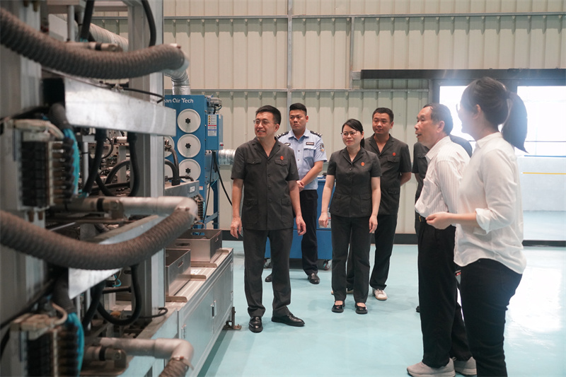 3月28日,北海中院执行团队实地走访北海星石碳材料科技有限公司,查看机器设备。黄尚洁 摄