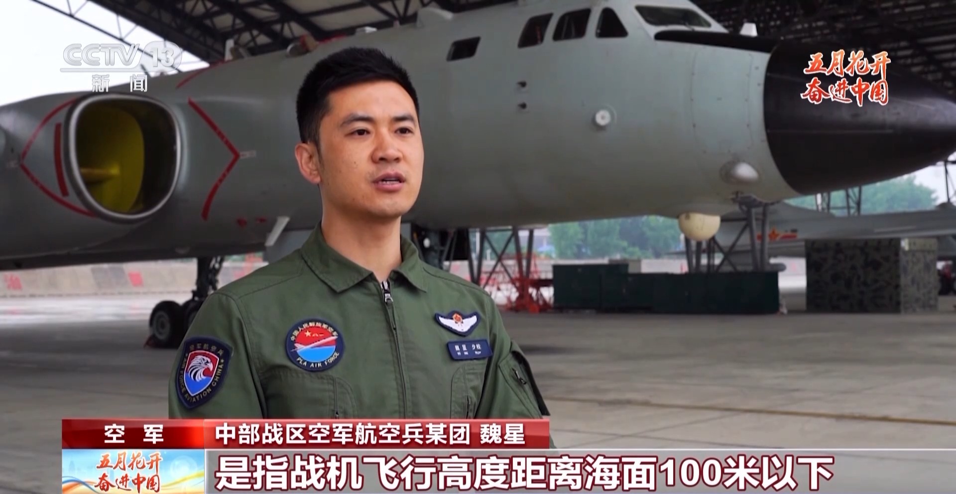 中部战区空军航空兵某团 魏星:轰炸机超低空突防,是指战机飞行高度距离海面100米以下,从而躲避雷达追踪实现对目标的突袭。实现超低空飞行,对飞行员的胆识和技术是一种极大的考验,尤其是对轰炸机这种大飞机来说难度倍增,轰炸机体积大、重量大、惯性大,没有小飞机那样操控灵活,可以说,超低空飞行每降低1米,战机风险会成倍增加,超低空飞行虽难但有意义。