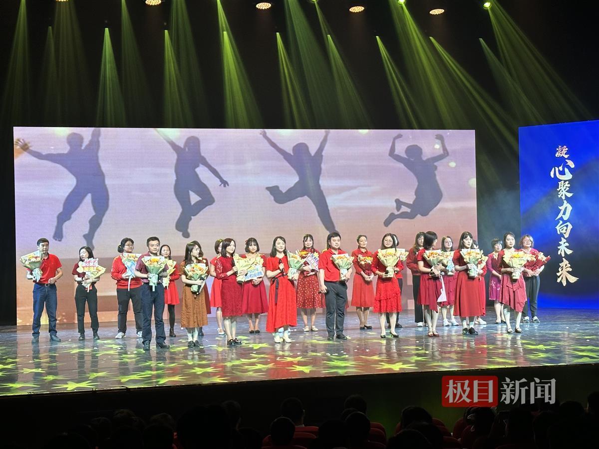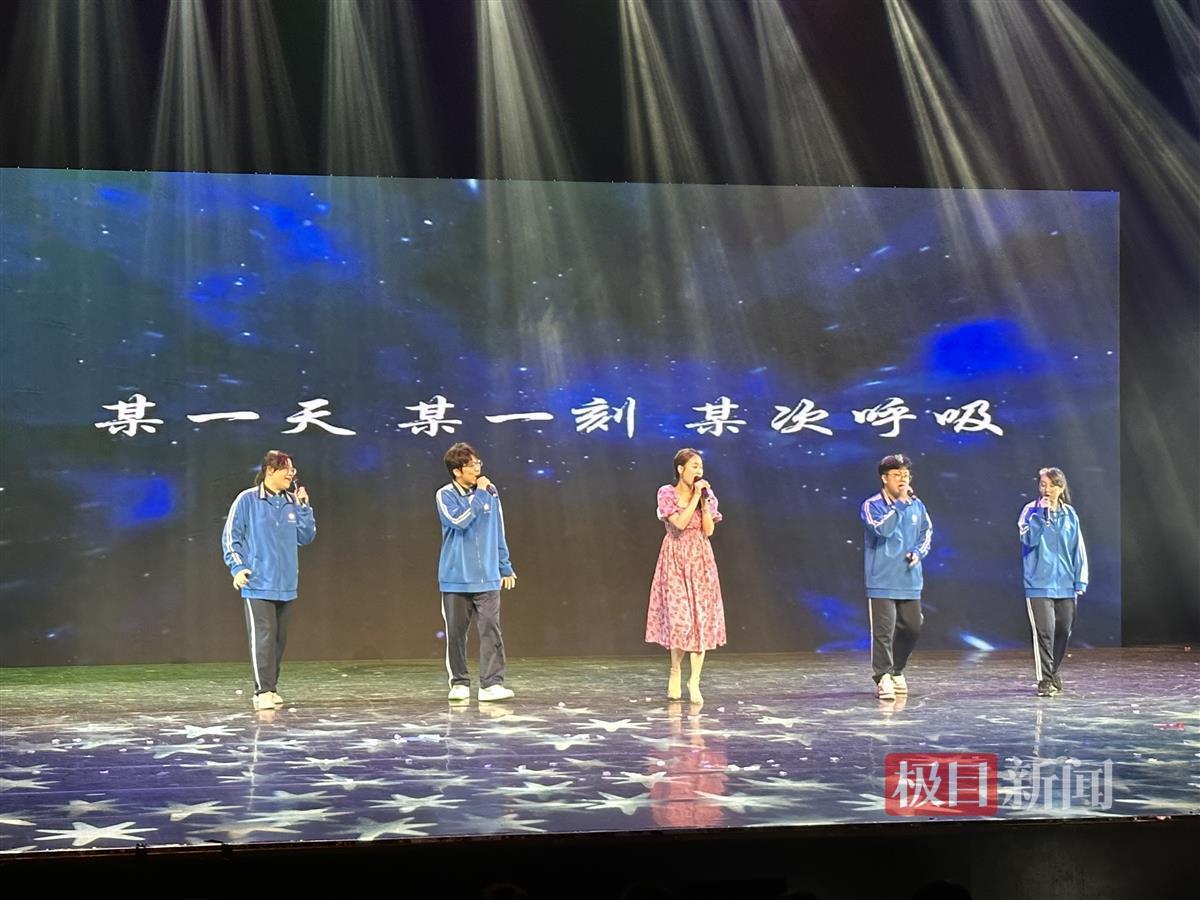 在台上,高三(2)班的学生展现了他们活泼的一面,与平日里的形象形成了鲜明反差。一位学生家长,看到孩子们的表现,感慨万分:“看到他们在台上如此活泼,和平日里有一定的反差,让我特别有触动。”