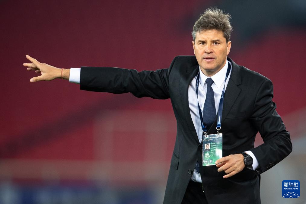 5月5日,武汉三镇队主教练里卡多在场边指挥。新华社记者 肖艺九 摄