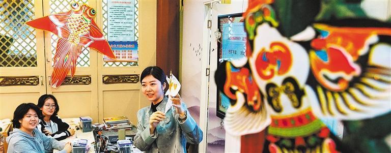 4月24日,位于北京市海淀区上庄镇的曹氏风筝工艺坊,工作人员正在介绍非遗风筝文化。近年来,该工艺坊通过定期开展非遗讲座、技艺培训等方式,传播非遗知识,弘扬中华传统文化。