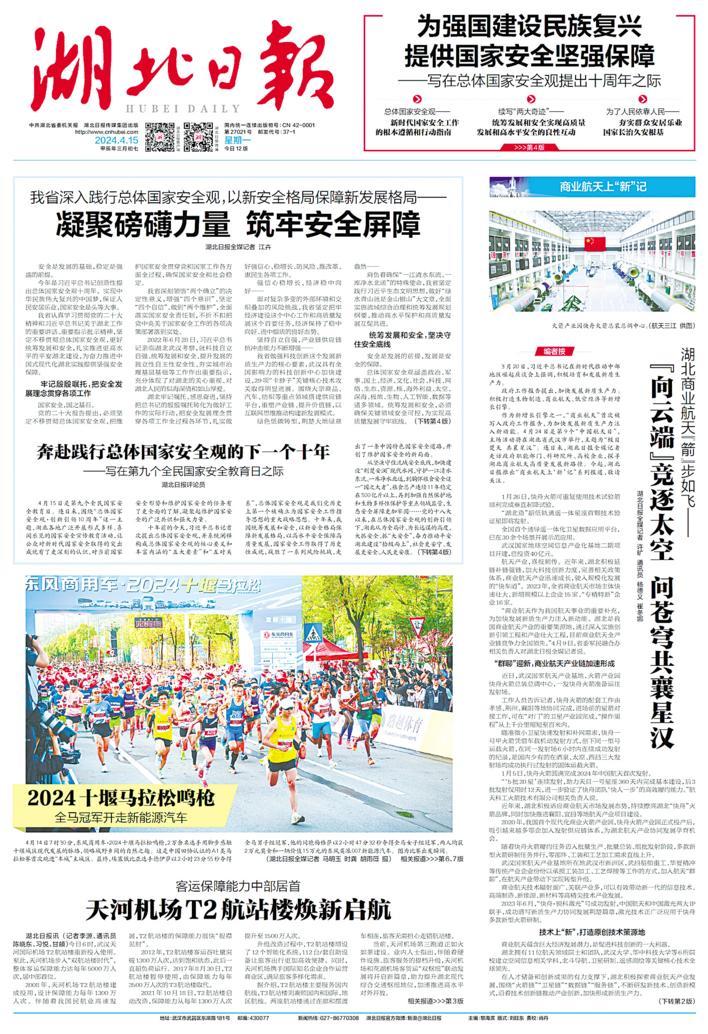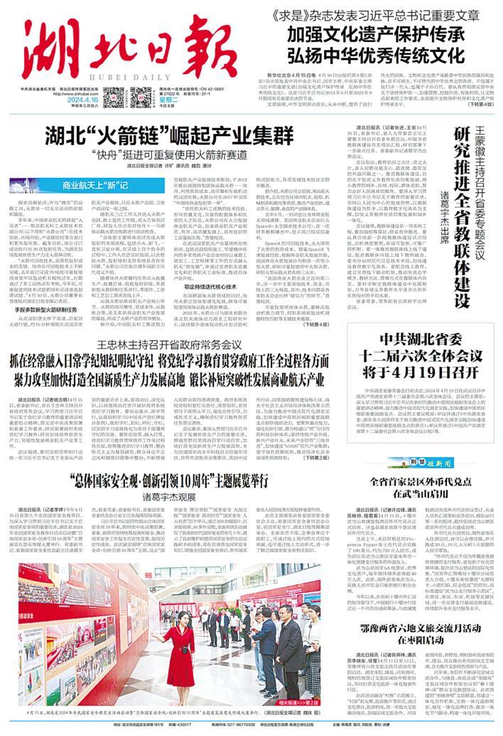 4月24日是第9个“中国航天日”,主场活动在湖北武汉举行,主题为“极目楚天 共襄星汉”。4月15日起,湖北日报适时推出“商业航天上‘新’记”系列报道,不仅为“中国航天日”主场活动的成功举办营造良好舆论氛围,同时也为湖北商业航天发展奏响奋进强音。