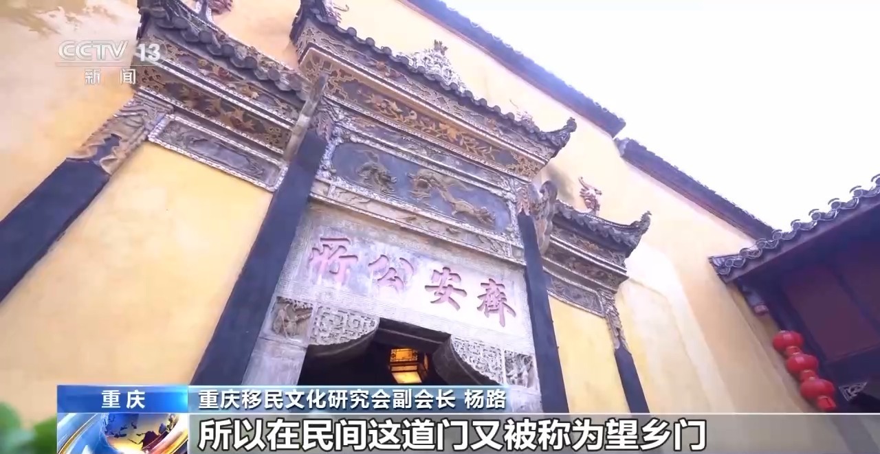 重庆移民文化研究会副会长 杨路:这道门有一些特别之处,它是斜的,是朝北偏东15度。它这个方向正好就是朝着自己的家乡湖北麻城的方向,所以在民间这道门又被称为望乡门。