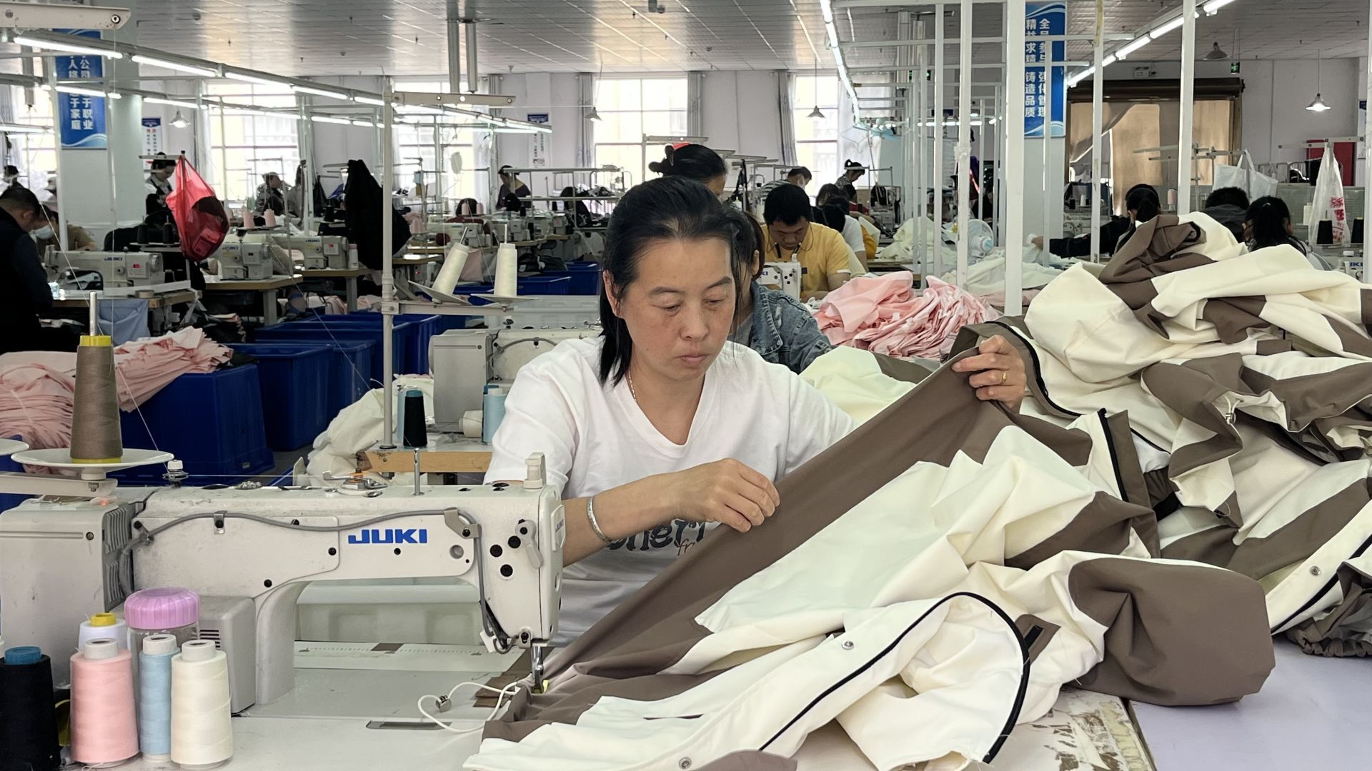 “一季度累计产值完成近1000万元,相比去年同期提升10%左右。”该公司IE部经理余黎华告诉记者,今年的订单很充足,员工也比较稳定,公司400名缝纫工人95%来自本地,大家干劲十足。