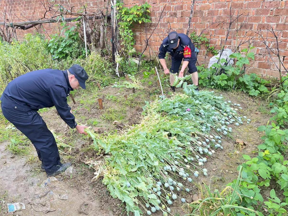 据办案民警介绍,5月3日,市民举报在仙桃城区一块荒地里发现疑似罂粟。民警立即赶往现场核实,在两堵围墙的夹角深处找到一片原植物罂粟。在无法确定种植者的情况下,民警和社区干部群众现场清点铲除罂粟植株共计182株。
