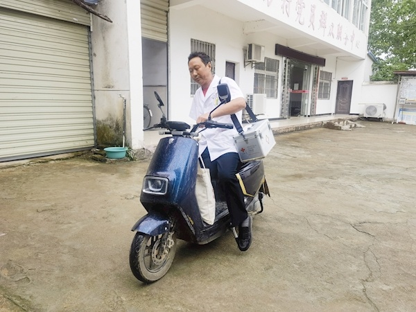 到村民家的路,几十年来他早已记得烂熟,甚至晚上、下雨天,他也能准确及时地赶到。他一共骑坏了11辆自行车、一辆残疾人电动车,现在的这辆电动车是去年随县退役军人事务局送给他的,继续陪着他行医。
