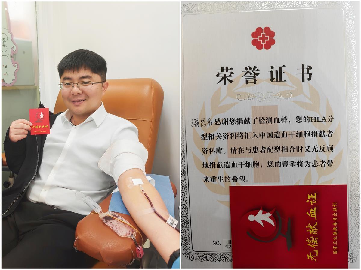 坚持无偿献血10次,并成为造血干细胞志愿捐献者