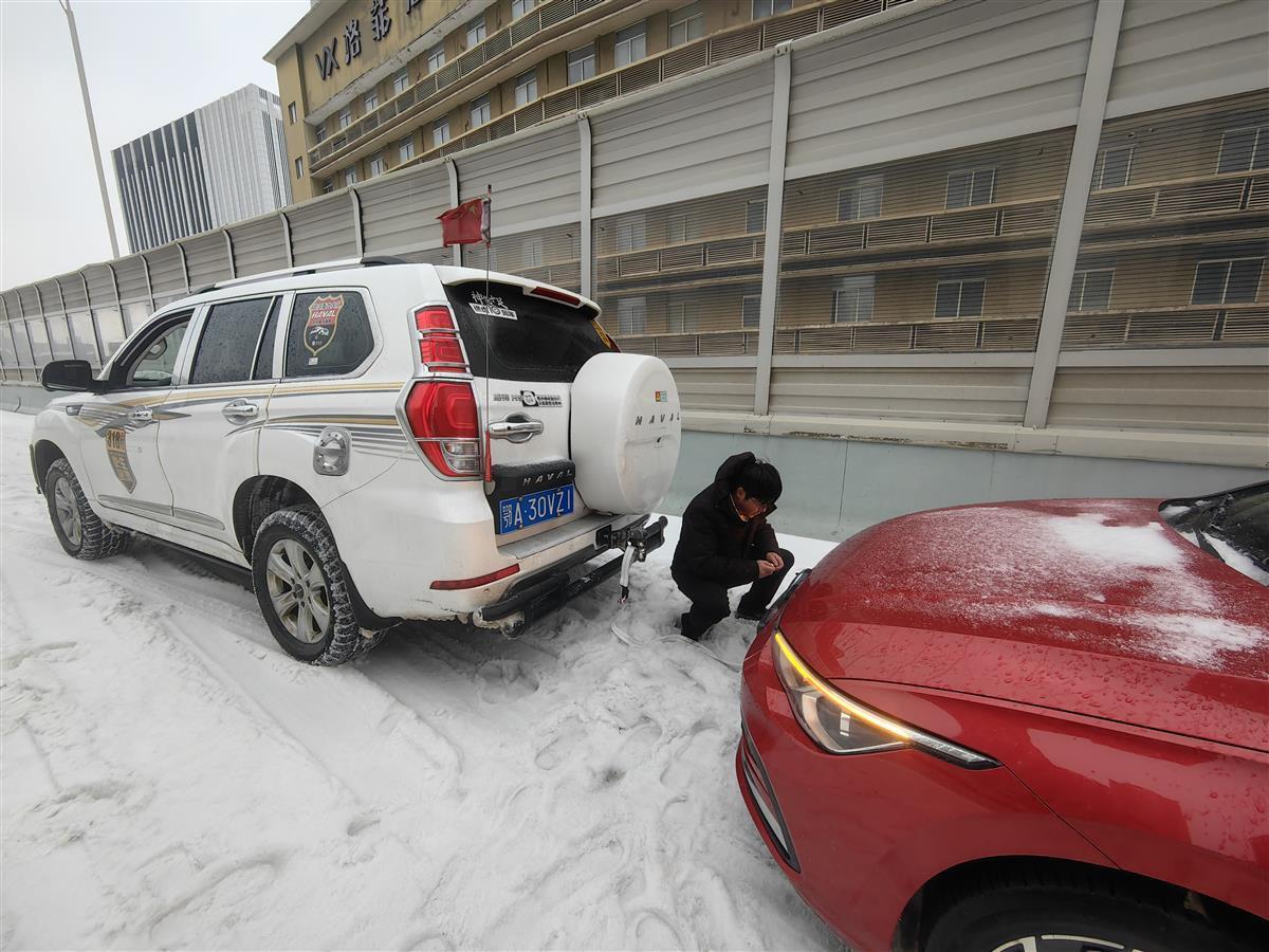 协助交警将在高架上16台打滑的小汽车脱离困境