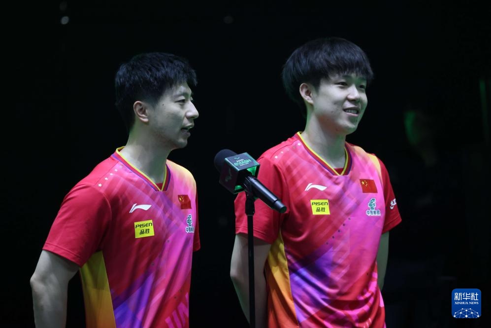 5月10日,马龙(左)/王楚钦在比赛后。新华社记者 王海洲 摄