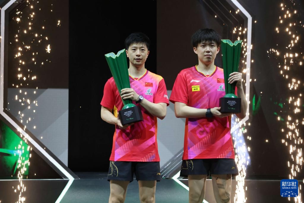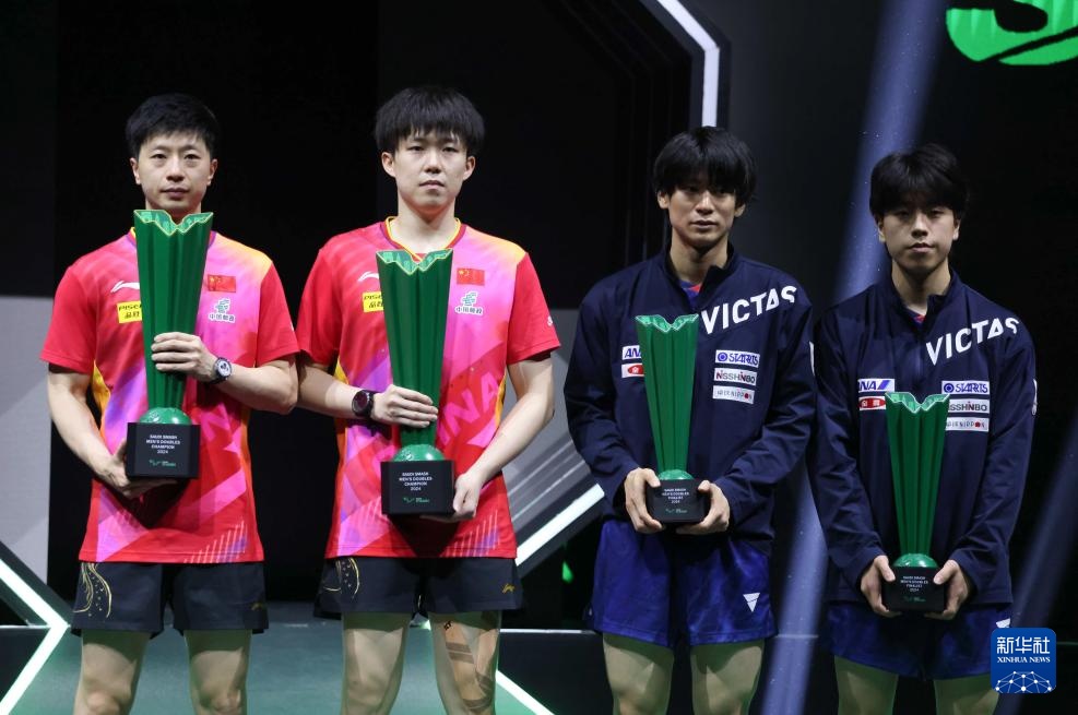 当日,在沙特吉达阿卜杜拉国王体育城举行的WTT沙特大满贯男子双打决赛中,中国组合马龙/王楚钦3比0战胜日本组合户上隼辅/篠塚大登,夺得冠军。