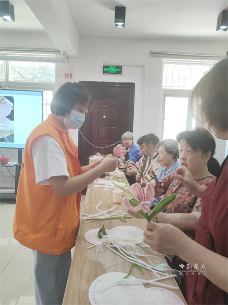 “扭扭花制作”环节是此次活动的亮点,现场,社区志愿者给每位居民分发扭扭棒,并详细讲解了具体制作方法和注意事项,大家挑选自己的喜欢颜色后,在老师的指导下开始制作,经过卷、捏、绕、粘、剪等十几道工序后,一根根不起眼的绒棒经过居民们的巧手打造,变成了一朵朵栩栩如生、鲜艳欲滴的花束。大家看着自己的劳动成果,禁不住洋溢出满足的笑容。