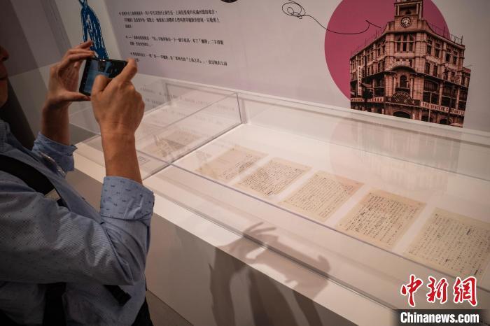 图为观众参观张爱玲的手稿原件展品。 中新网记者 侯宇 摄