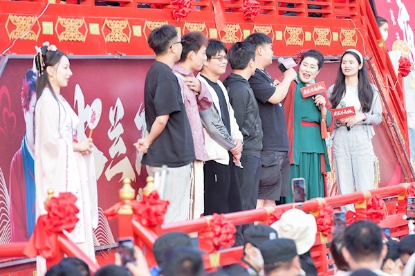 原来,今年火爆网络的河南开封相亲栏目“王婆说媒”主持人赵梅现身木兰不夜城,现场主持“干娘茶馆”大型交友活动,吸引了众多游客和不少单身男女前来参加。