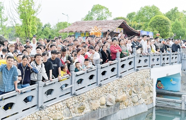 5月11日下午,位于武汉市黄陂区姚家集街杜堂村的木兰不夜城景区内人头攒动,热闹非凡。