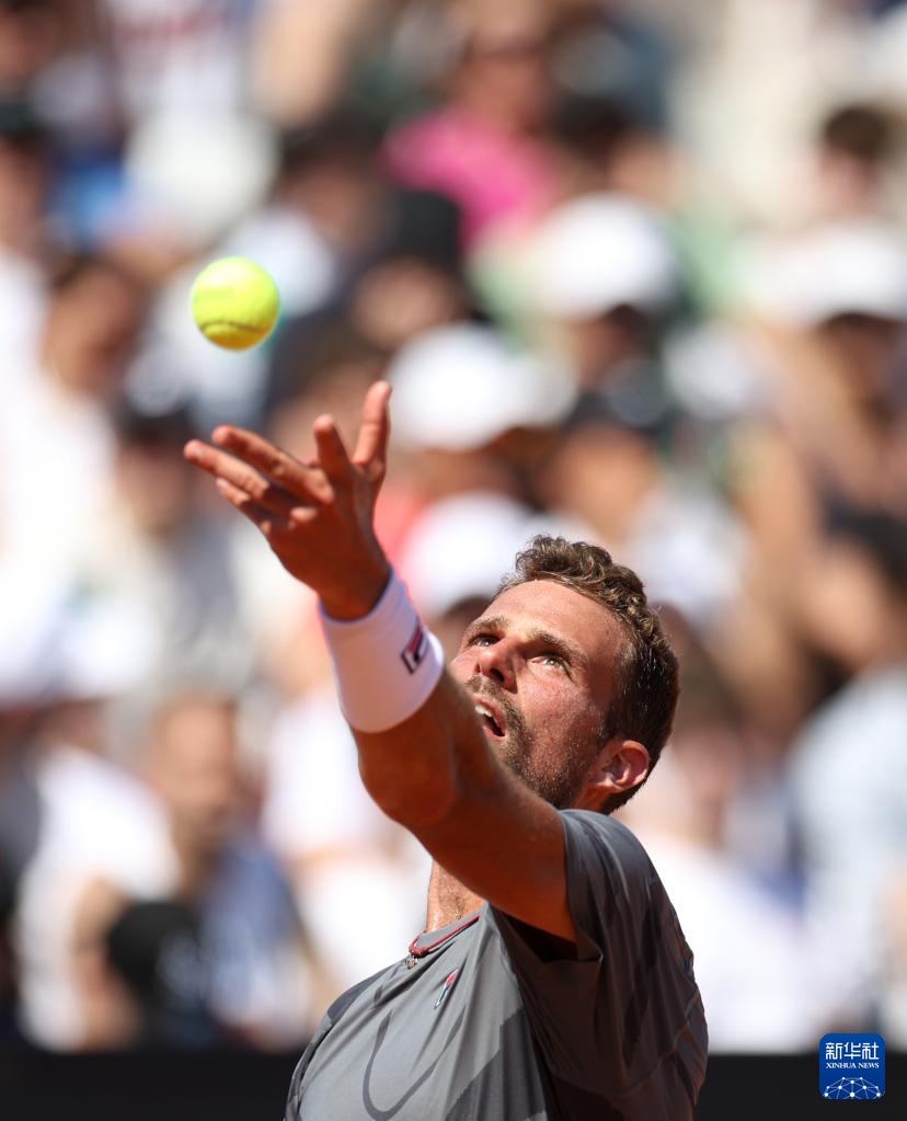5月11日,纳波利塔诺在比赛中发球。新华社记者 李京 摄
