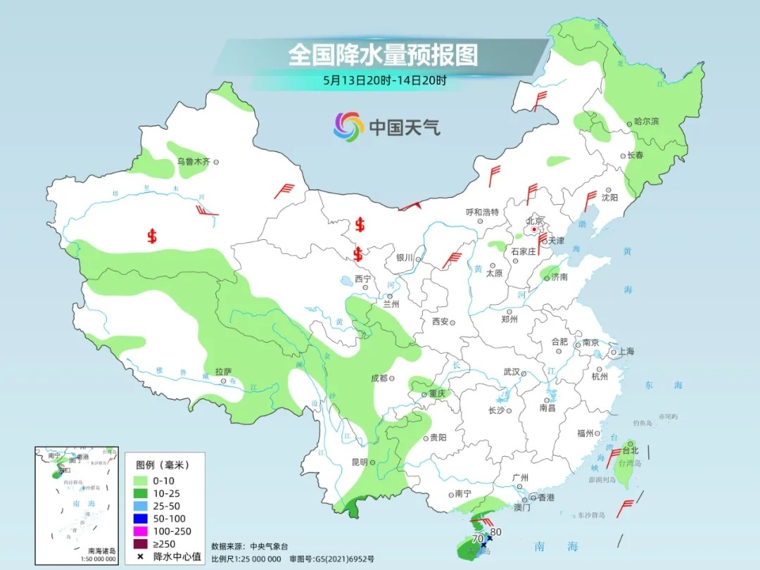 未来几天,全国大部降水仍会较弱,江南、华南地区也会迎来5-6天的降雨间歇期,阳光上线。不过,受偏东风和地形的影响,明后两天在贵州西南部、云南东部和南部、广西西部、海南岛等地还会出现持续降雨,普遍为中到大雨,局地或现暴雨。