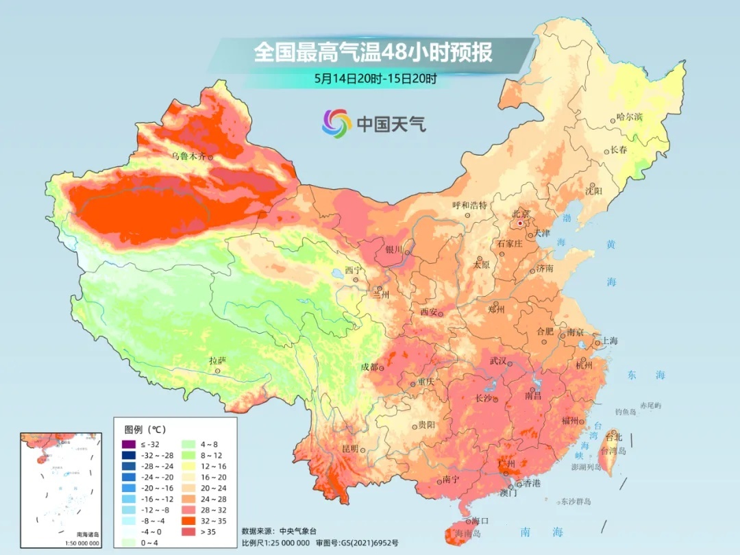 明后两天,一股偏东路径的冷空气又将“闪现”降温,暂时中断目前30℃北扩的进程。其中明天,受其影响,华北北部到东北西部将出现6-14℃的降温;后天,随着冷空气东移南下,降温将波及东北大部以及黄淮到江淮等地,降幅也在6-14℃。