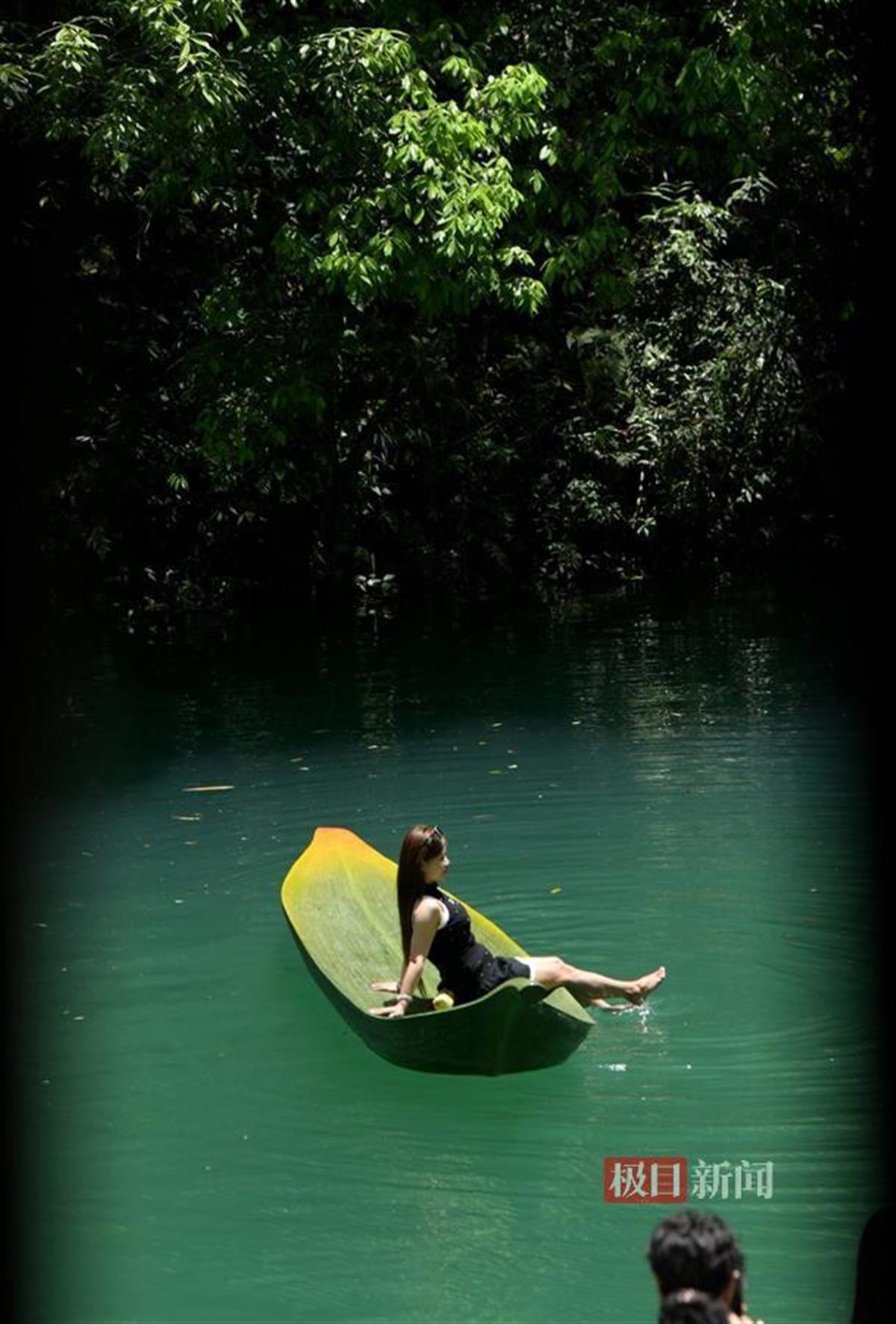 “五一”假期一天,屏山旅游景区首次推出形似箬叶的小船体验项目,“箬叶”浮碧波,深受游客欢迎,纷纷在“箬叶”船上拍摄写真。