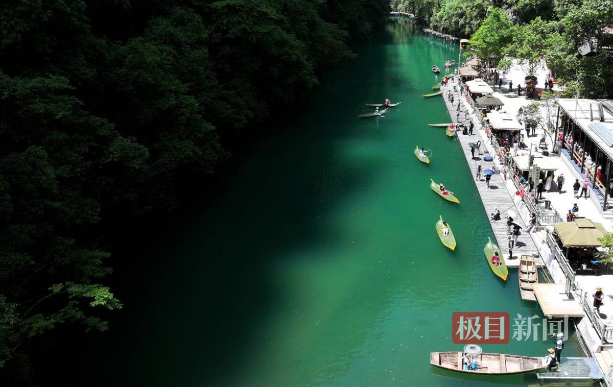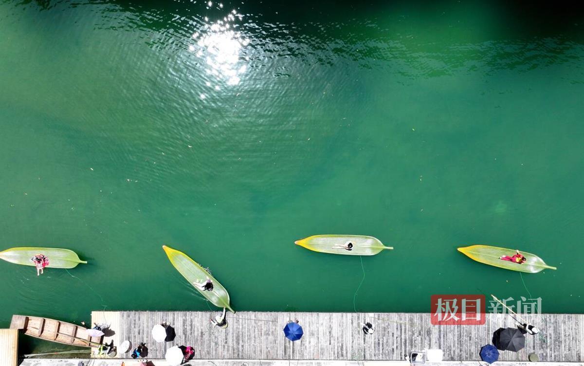 “五一小长假,景区同比2023年客流增长了30%以上,每天上午10点,当天门票就被预约完了。三分之二的游客都要体验箬叶船。”鹤峰县宝通旅游开发有限公司总经理张亚楠说,“箬叶”船不仅增添了景区的观赏性,也增强了游客的体验感。