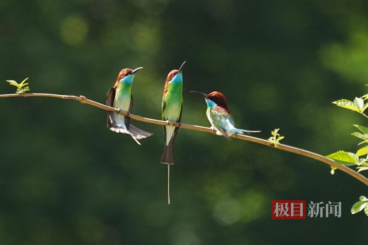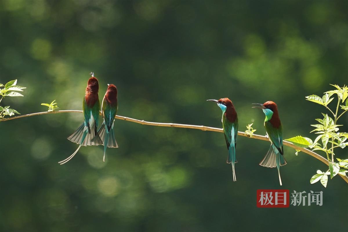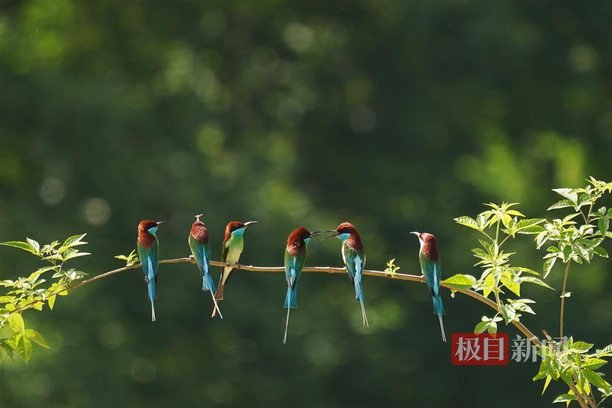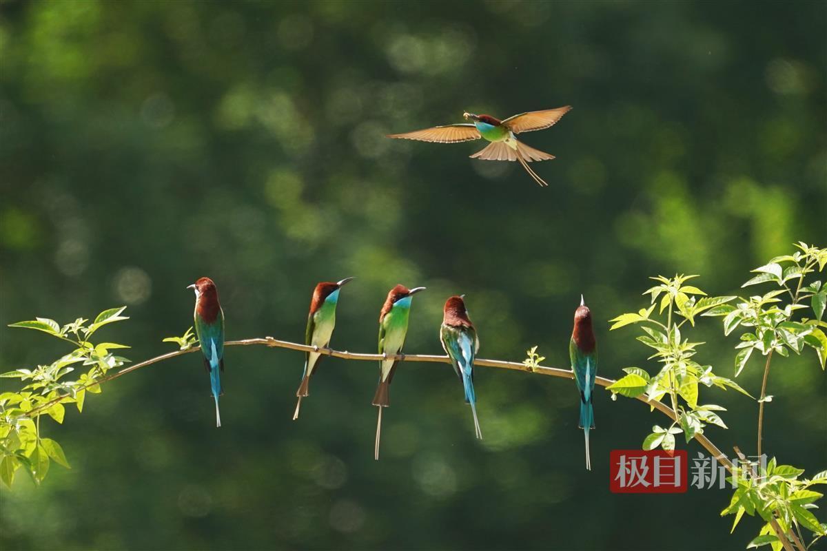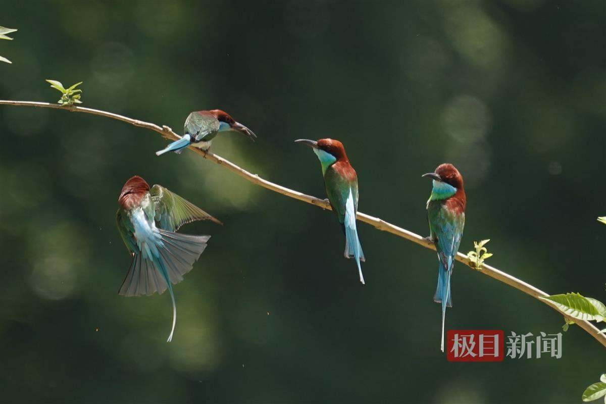 据悉,七里坪镇是中国蓝喉蜂虎的重要繁殖地之一。每年5月至9月,蓝喉蜂虎从东南亚迁徙至此,在这里完成交配繁殖后,它们便在夏末初秋时节拖家带口开始新一轮的迁徙,飞回东南亚越冬。