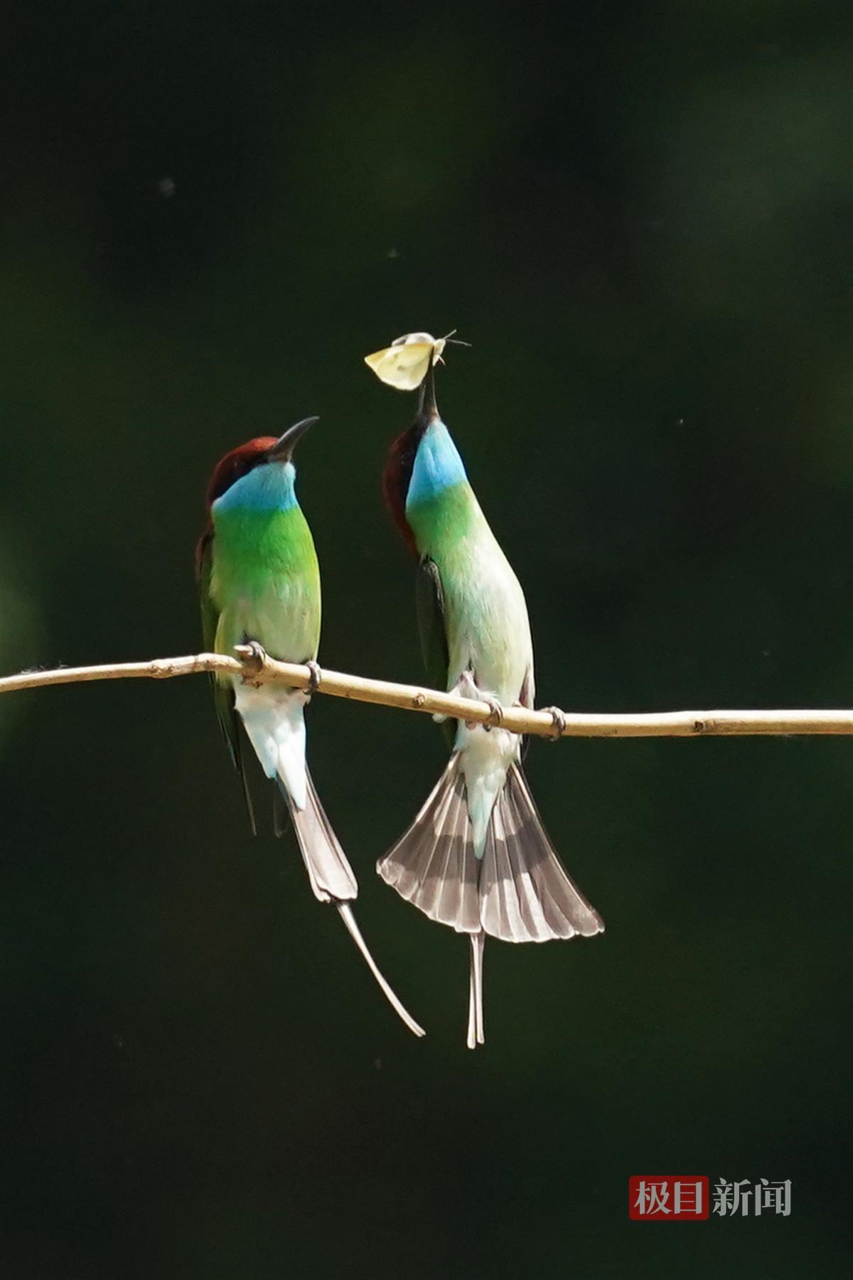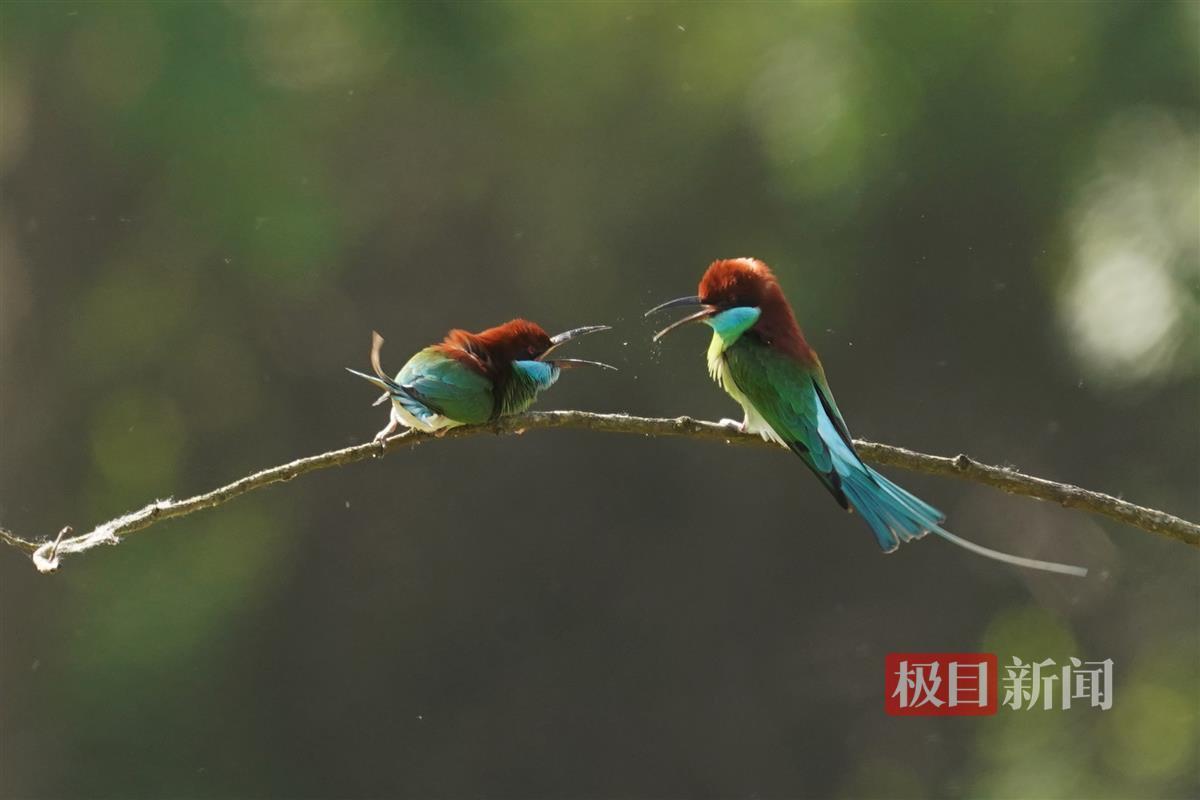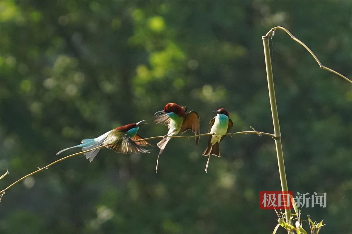 今年,蓝喉蜂虎的数量比往年有所增多,特别是鸟儿“恋爱、交配、觅食、筑巢”活动的唯美画面,吸引不少生态摄影师前来蹲守拍摄。