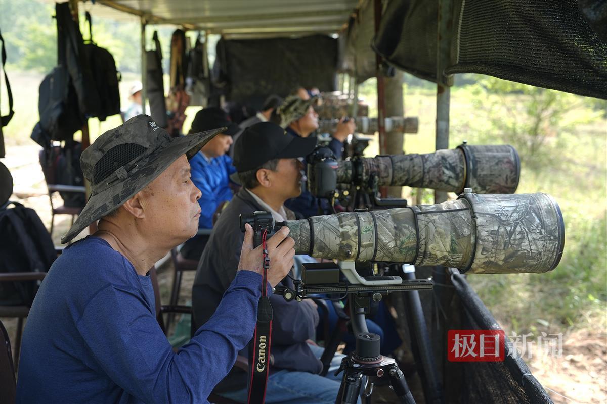 5月13日,黄冈市红安县七里坪镇杨山河滩,一群蓝喉蜂虎在草丛间自由地觅食嬉戏、追逐打闹……不远处的伪装棚内,闻讯从全国各地赶来的二十多名摄影师,个个手持“长枪短炮”在不停地摁下快门,捕捉动人的瞬间。