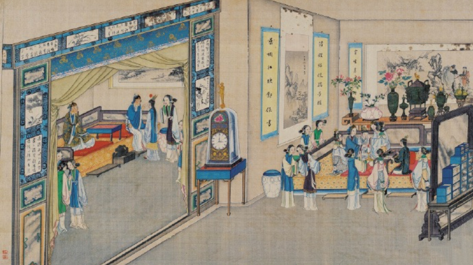△ 清孙温、孙允谟《全本红楼梦画册》,旅顺博物馆藏。在画册第25回中,就有自鸣钟的形象。