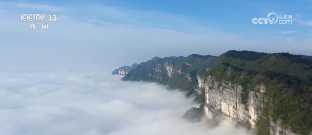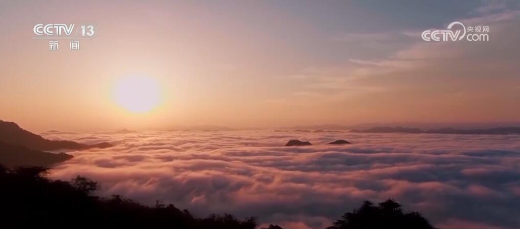 重庆彭水:日出霞光照万丈 百里云海飞瀑来