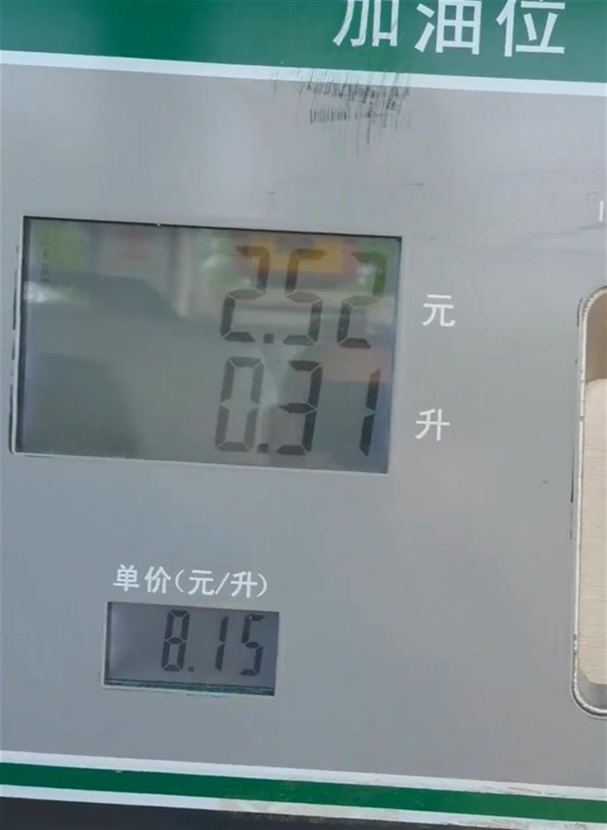 网友发布的视频称,他在内蒙古赤峰一加油站自助加油时,刚把油枪插进车里,还没来得及加油,油表的价格就跳到了2.52元。他向加油站工作人员反映后,工作人员上前将油表归零,他才继续开始加油。