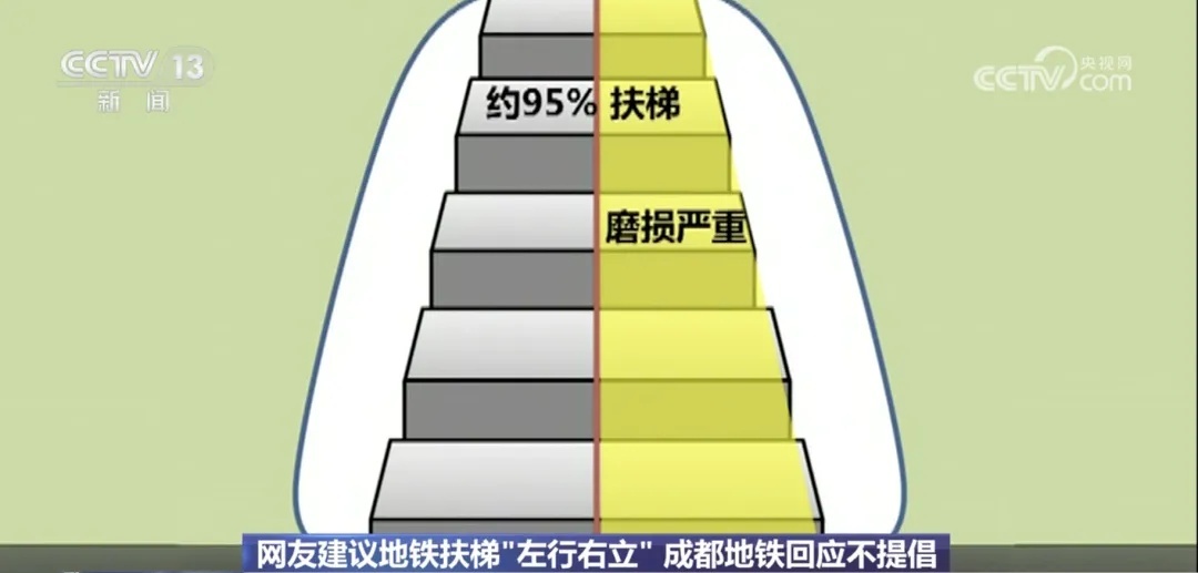 此外,根据南京地铁运营公司统计的运营数据,长期“左行右立”对电梯的损害很大,95%的电梯损坏是由于电梯受力不均衡导致的。