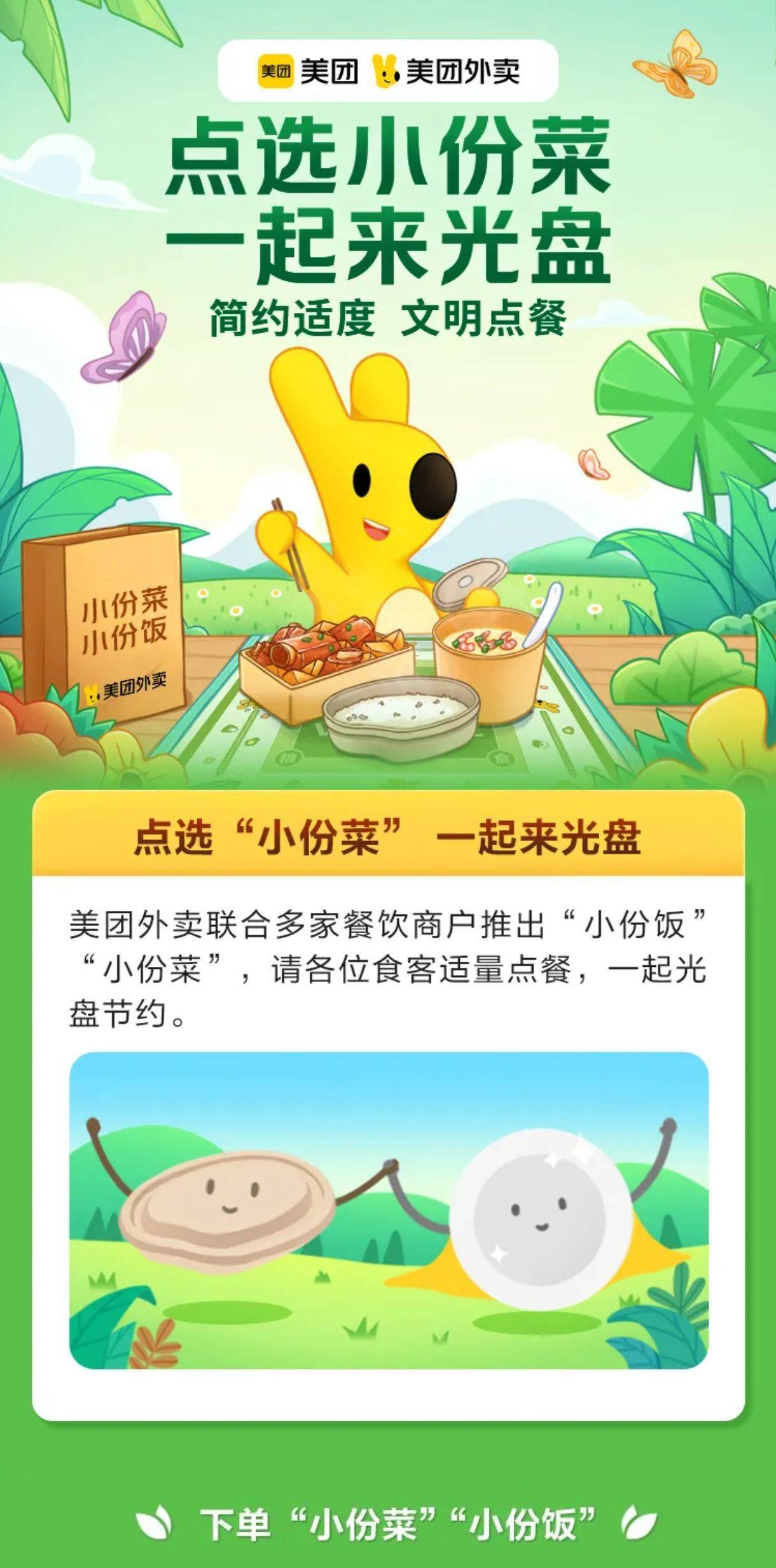 目前,美团、饿了么等主流外卖点餐APP已上线“点选小份菜,一起来光盘”“品质一人食”等专区。对于设置小份饭菜的商户,饿了么平台将通过首页金刚位(APP页面核心区域)、搜索关键字直达、设置专门会场等给予流量扶持,并为小份餐品开辟专门入口,顾客浏览下单时,能够更精准匹配需求。