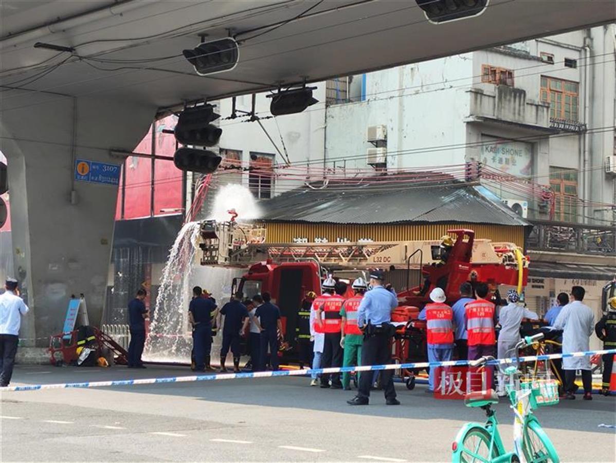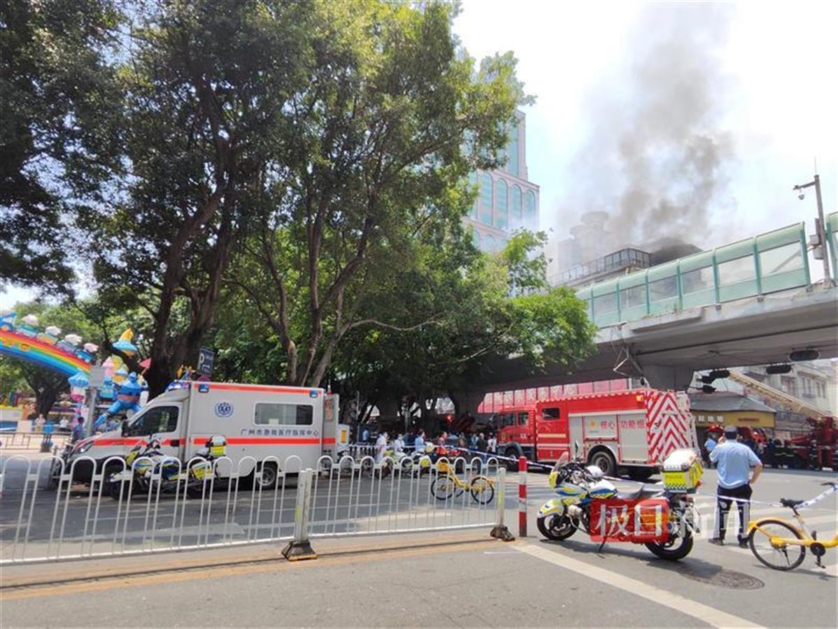 据了解,火灾发生在广州市荔湾区十三行龙城服装批发城。16日中午12时许,极目新闻记者来到火灾现场,发现该服装批发城附近多个路口及人民南路路段已设置警戒线,交通一度堵塞。有警方工作人员正在维持秩序,并设置喇叭提醒路过居民不要围观。