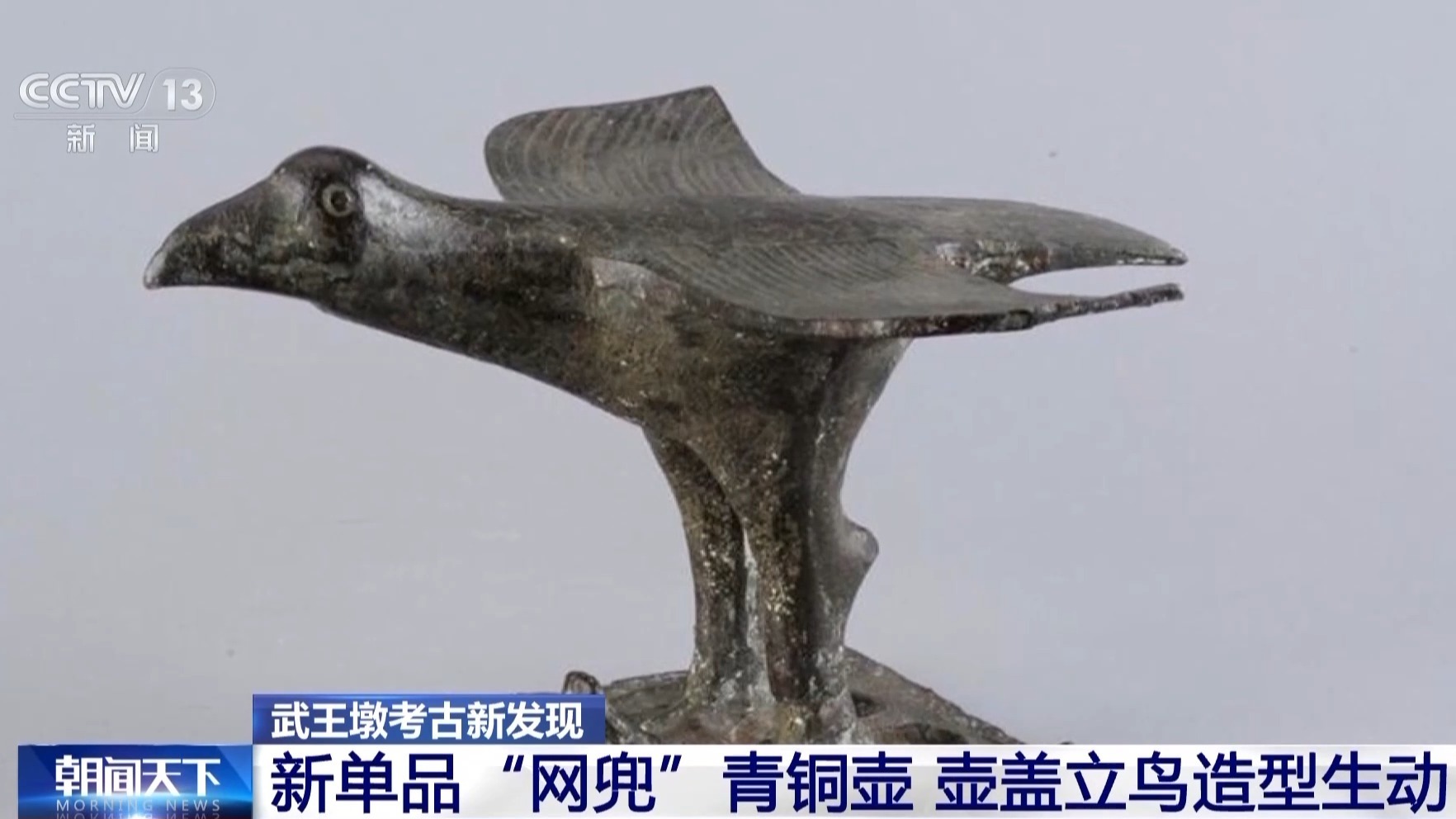 武王墩考古发掘项目考古一组组长 张闻捷:一般我们觉得壶主要还是装酒的,但是立鸟的这个壶的形制,以前在楚墓中并不常见,我当时看到出土的时候感觉非常意外。