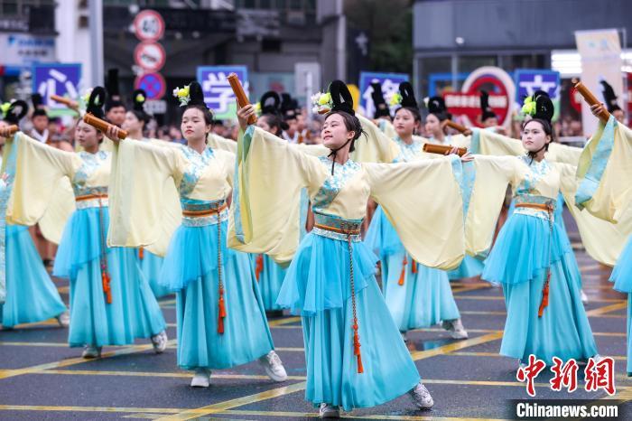 “爽爽贵阳·心学修文”方阵。中新网记者 瞿宏伦 摄