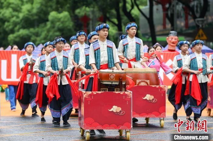 民俗文化方阵。中新网记者 瞿宏伦 摄