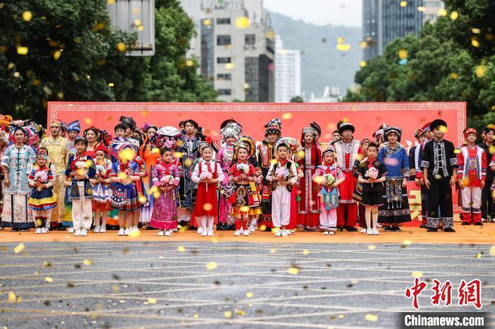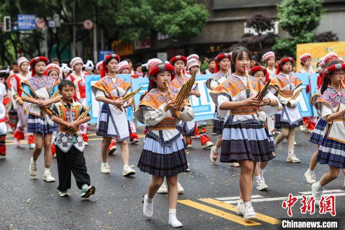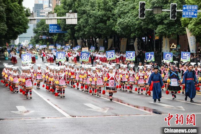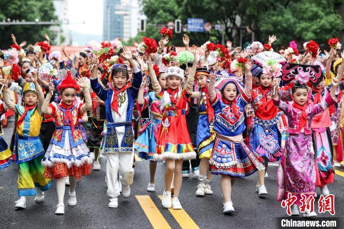 民族巡游大联欢吸引贵阳市民。中新网记者 瞿宏伦 摄