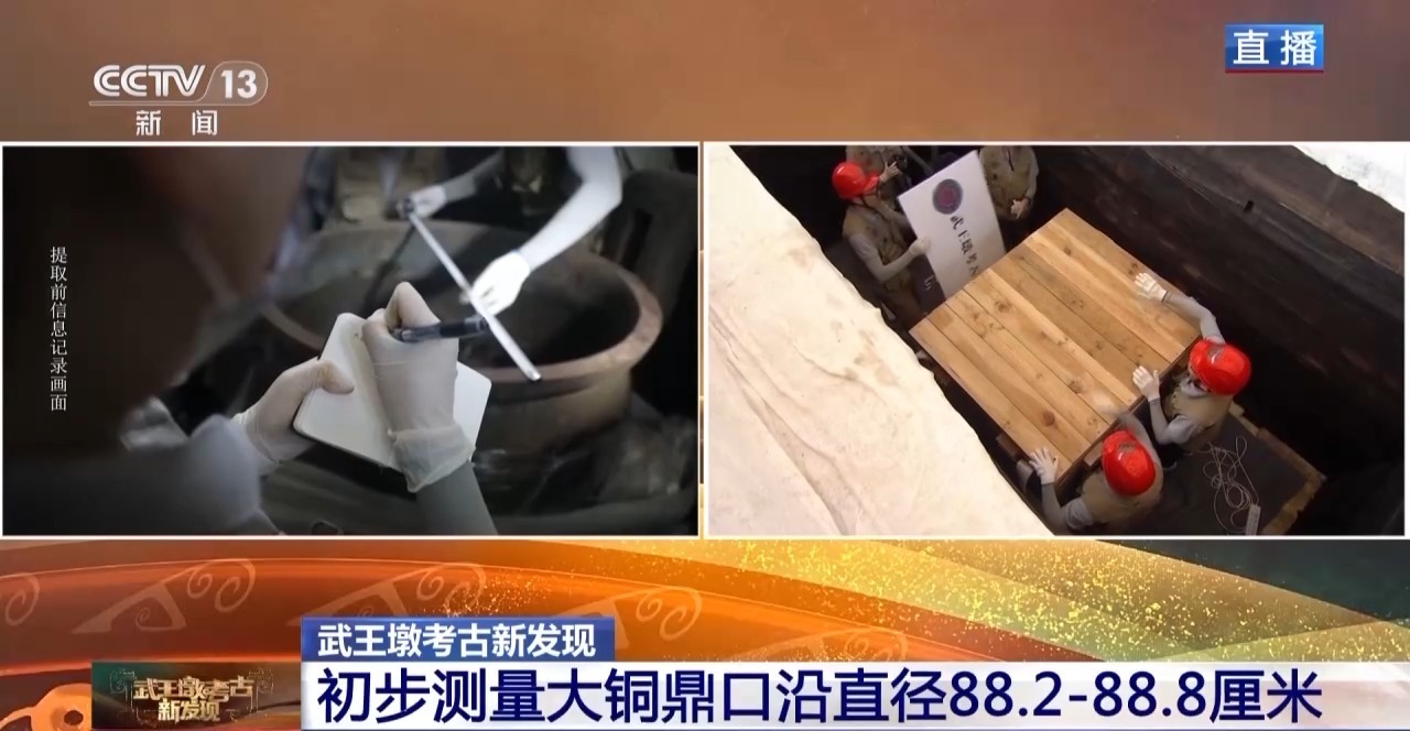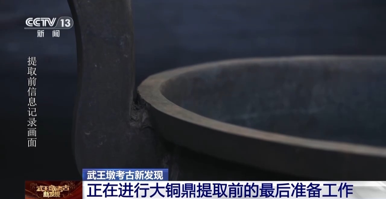 武王墩墓已提取各类文物3000多件(组),这件大铜鼎是本次考古的一个重磅发现。