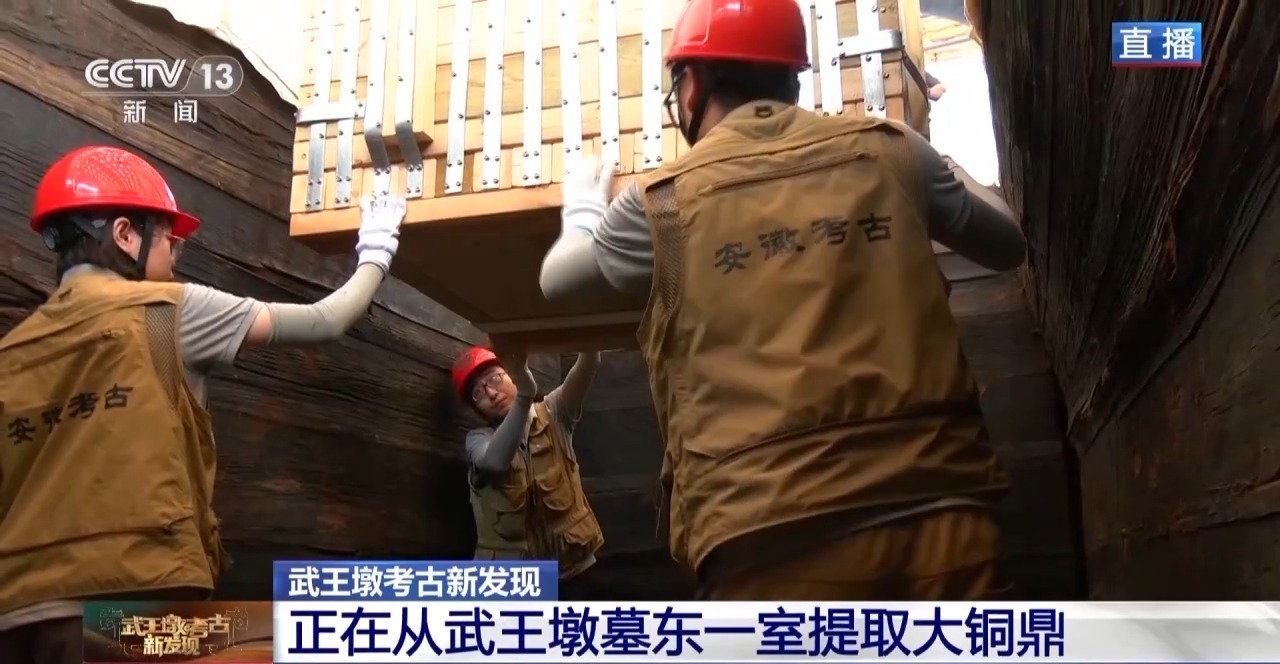 在武王墩考古现场提取的大铜鼎,将在考古实验室做进一步保护和研究。武王墩考古新发现,无疑也为中华文明多元一体再添一例新证。
