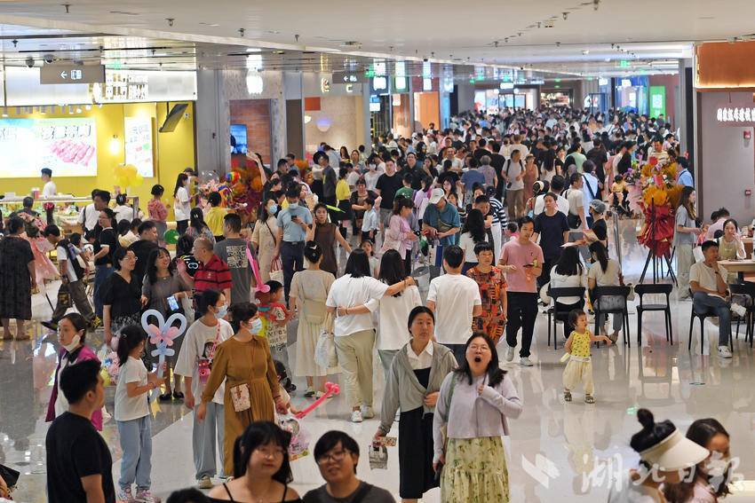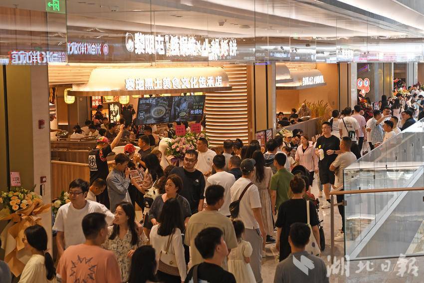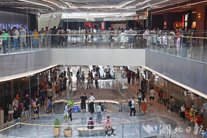 5月18日,武汉又一座大型商业体与市民见面。坐落于长江右岸的最大商业体——武昌万象城携25万平方米消费场景和500余个品牌揭开神秘面纱。至此,武昌滨江商务区核心区3公里内聚集7家“全国首个”“华中销冠”“集团顶配”的大型商业综合体,正悄然改变武汉“北强南弱”的商业格局。(湖北日报全媒记者 李溪 摄)