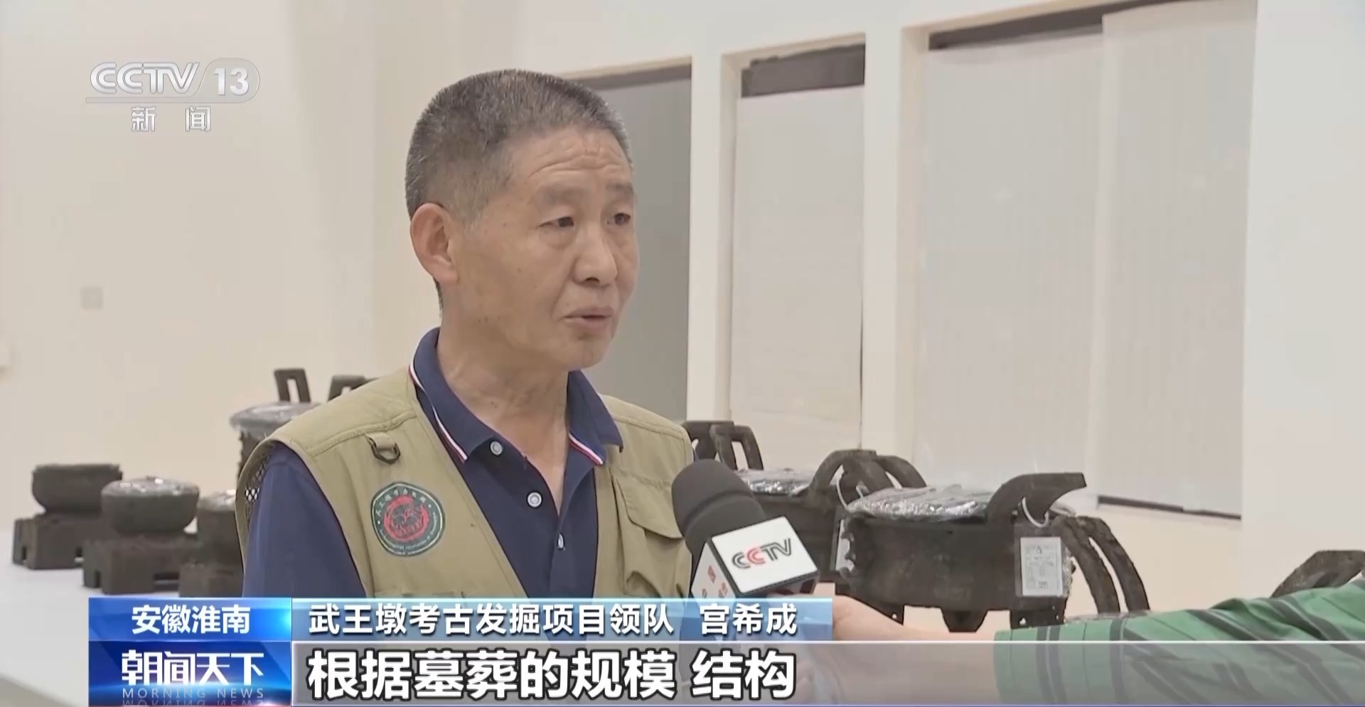 武王墩考古发掘项目领队 宫希成:这座墓的发掘为我们提供了非常丰富的珍贵信息,根据墓葬的规模、结构、出土文物和文字资料,结合文献史料记载,墓主人身份可能就是楚国的考烈王。
