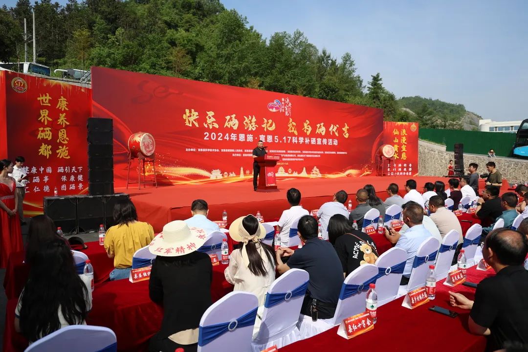 为进一步发展壮大富硒产业,倡导群众建立科学补硒观念。2024年5月17日,一场以“快乐硒游记·我为硒代言”为主题的科学补硒宣传活动在宣恩县国硒集团盛大举行。本次活动由宣恩县科学技术协会、宣恩县椒园镇人民政府、宣恩县晓关侗族乡人民政府、宣恩县文化和旅游局 、宣恩县农业农村局、宣恩县科经局、宣恩县卫健局、宣恩县融媒体中心主办,恩施州科学技术协会、恩施州硒资源保护和开发中心指导,恩施州国硒生物科技有限公司、湖北硒康仁健康产业集团有限公司、湖北硒引天下国际旅行社有限公司执行。吸引了来自全国各地的硒产业相关企业、旅行社及2200余名硒友代表参与。