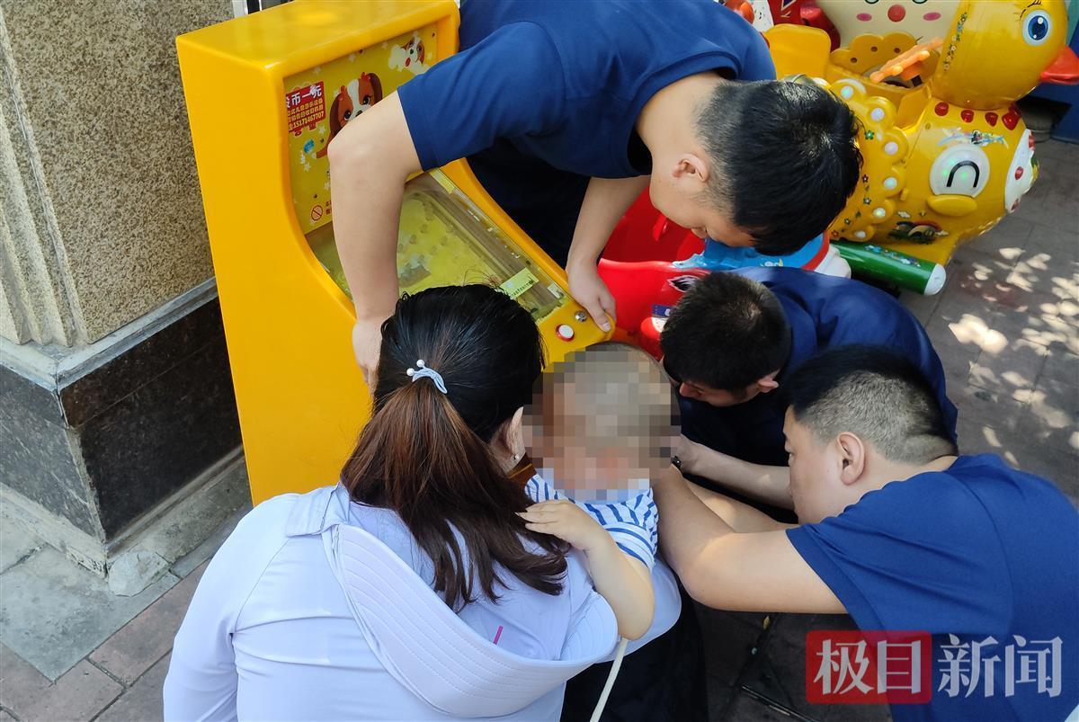 5月17日上午10时03分,武汉市洪山区张家湾街道某小区外,一名2岁幼童的右手食指不慎卡进放置在商铺门前的游戏机弹珠槽内。武汉市消防救援指挥中心立即调派青菱路消防救援站赶赴现场处置。为尽快使幼童手指脱困,在与商家沟通协商后,消防员决定先使用工具将游戏机弹珠槽从主机上撬出,再使用剪刀钳对弹珠槽边缘进行剪切。最终,该幼童成功脱困。由于救援及时,幼童的手指并无大碍。