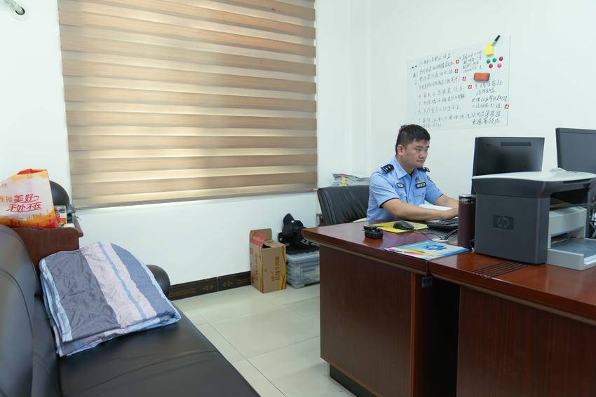 为了更快更好地完成工作,崔清琰把家“搬”到了派出所。办公室成了临时住所,柜子里长期叠放着一床被子,累了就在沙发上短憩一会。