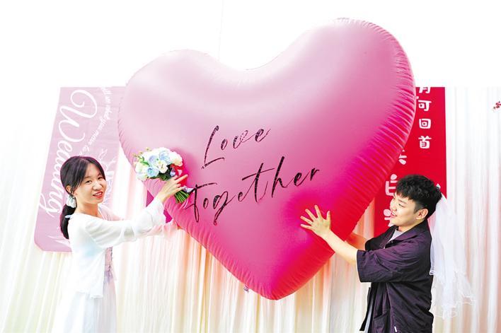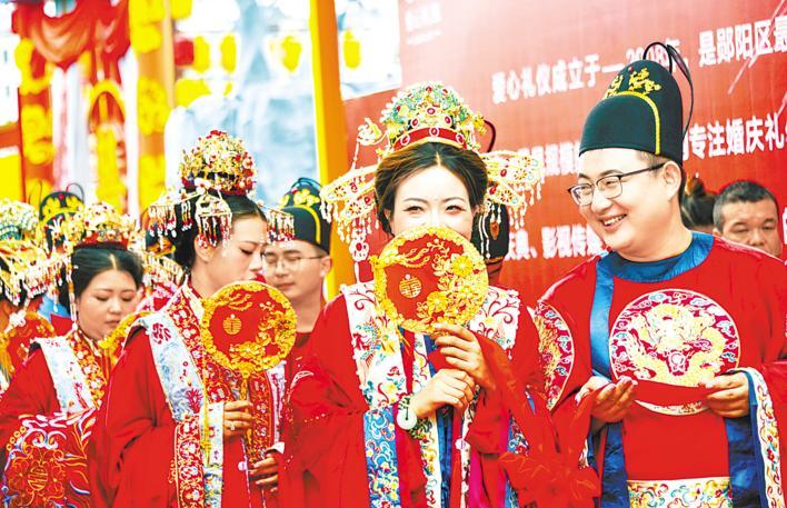 “我们大力推进结婚登记‘全省通办’‘跨省通办’,培育新型婚育文化,倡导文明简约时尚新风。”十堰市茅箭区民政局党组书记、局长常芸说,当地把喜文化产业链和南部山区优质生态文化旅游资源串联,为新人提供婚宴民宿、户外拍摄等“一条龙”服务,做大做强“禧爱联盟”服务平台,促进“甜蜜事业”和“甜蜜经济”的双向发展。