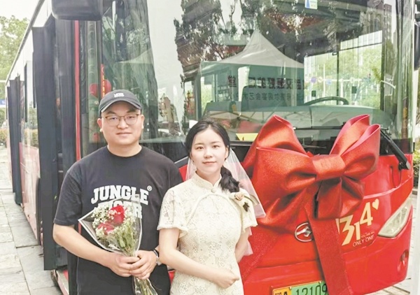 吴女士对张先生的想法表示赞同。她说:“用公交婚车是最拉风的,是最幸福的‘显眼包’。”