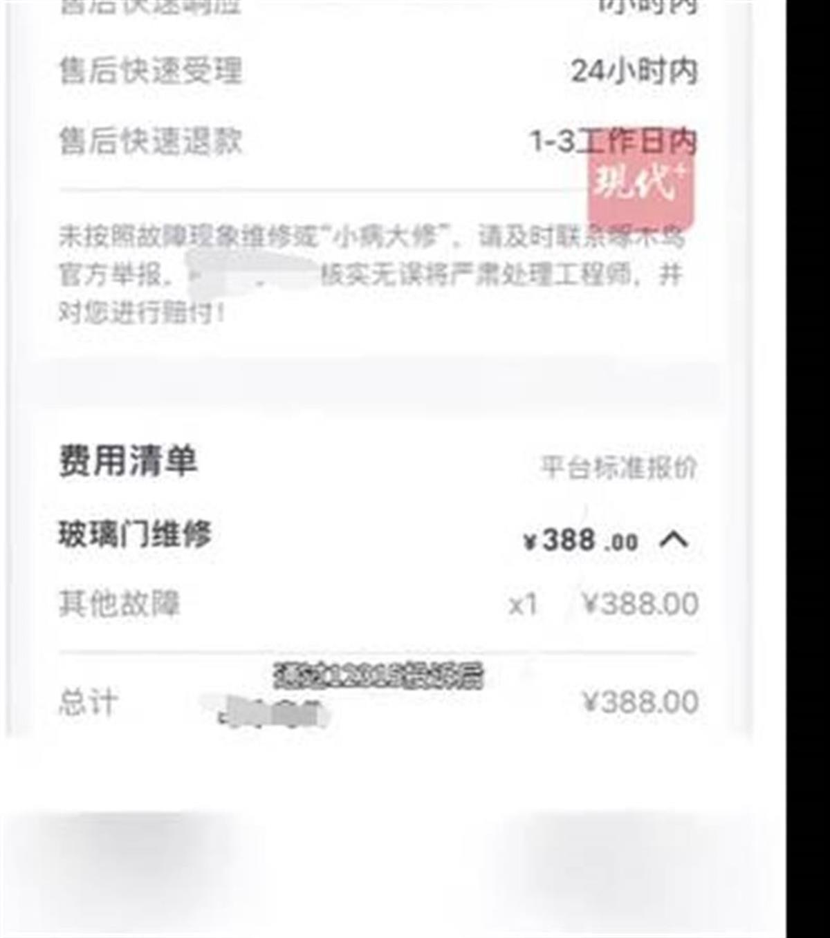 安装2颗螺丝花费388元(图源:视频截图)