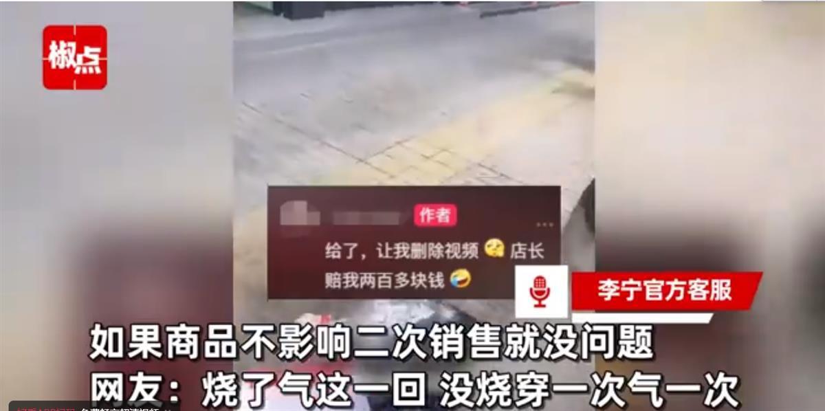 日前,一浙江男子自称在一家李宁专卖店试鞋时,被店员污蔑弄脏新鞋,遂购买后烧鞋泄愤,引发诸多网友关注。5月20日,李宁方面回应记者称,此事系顾客与店员沟通中产生的误会,门店并无强制要求顾客买下的情况,当天门店负责人就与顾客沟通并消除了误会,事情已经解决。(据5月21日大风新闻报道)