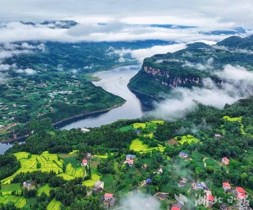 观景平台右侧,廪君峰雄壮巍峨,恰似一位凝视清江的威武将军,双臂环抱,左侧是展开的披风,久经沙场、骁勇善战的气场扑面而来。